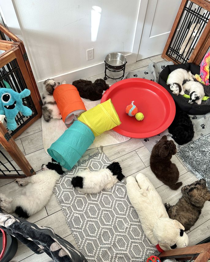 The nurturing time/care/effort we put into our puppies and parents. Our poodles are carefully selected, are healthy AKC Genetically Health Tested and OFA Evaluated cleared. Our parents produce beautiful body structure poodle puppies with calm affectionate temperaments. We desensitize our puppies and do Early Neurological Stimulation for rapid brain development. Our puppies have great temperaments and are well socialized.