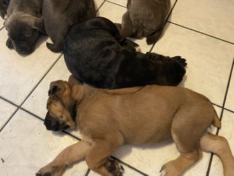 Our puppies include gray and fawn, chestnut brindle, black, fawn, gray, gray brindle, and red. Colors will vary depending on the parent dogs.
