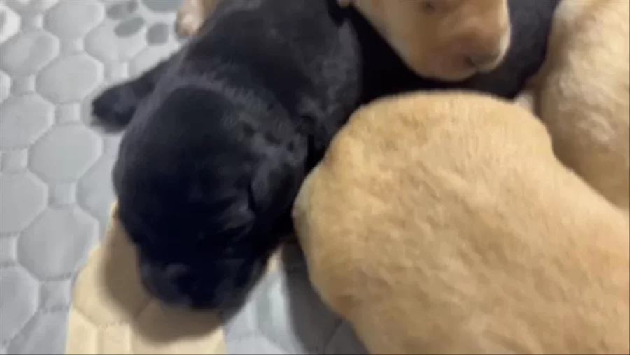 Pups are doing GREAT eyes & ears are open & we have started LOUD noise desensitization! They show ZERO FEAR! AVAILABLE ONE BLACK MALE & FEMALE ONE YELLOW MALE