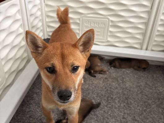 Our dogs are family dogs. Raised in a home with 5 children, and we have 4 shibas, plus 2 rescues that are older. We socialize all our puppies from birth. All have been handled since birth, paper trained since 3 weeks old, nails and baths start at 4 weeks with desensitization so they are used to the process. We hand feed and group feed to attend to any resource guarding that may pop up. We use positive reinforcement with our pups.