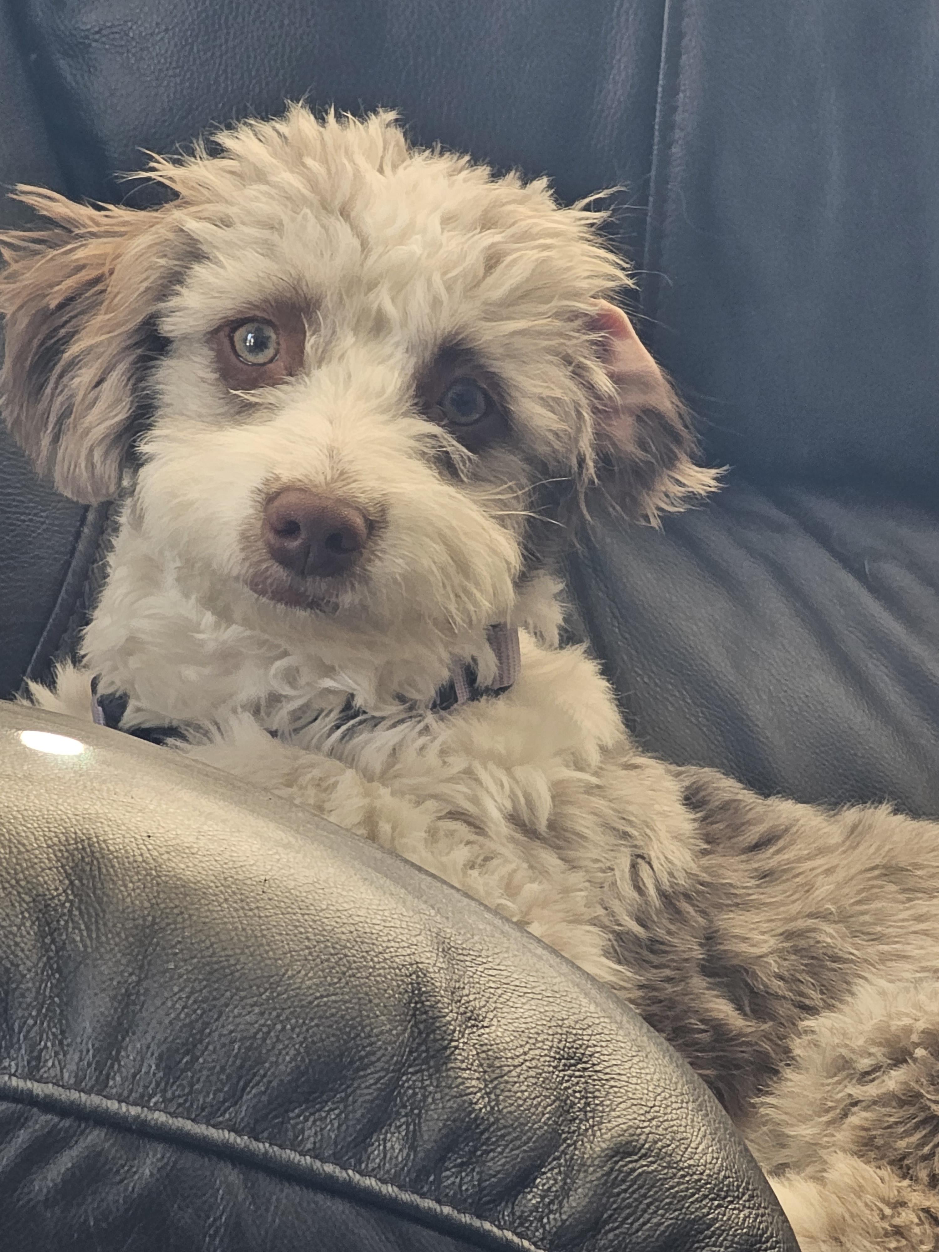 Aspyn is a female Aussiedoodle. Carefully selected as a great representative of her breed, Ashley decided to make her part of their program. Ashley has passed Good Dog’s screening process, which involved a review of their breeding practices, environment, and the mental and physical health of their dogs.
