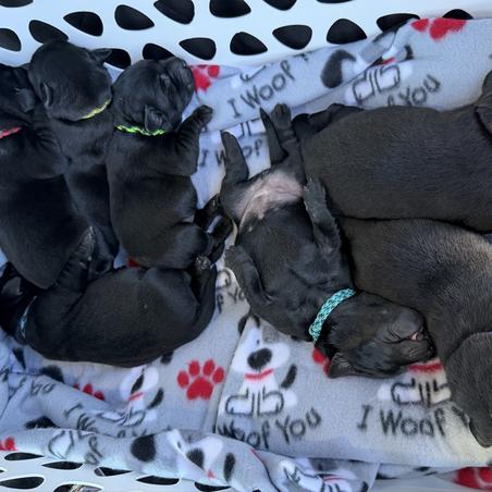 Our puppies include black and chocolate. Colors will vary depending on the parent dogs.
