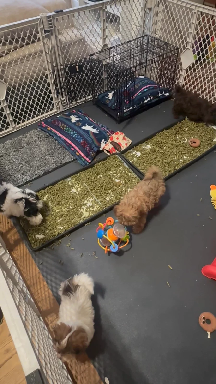Th Bolonka and Havanese puppies are enjoying their living room play area so much!