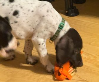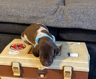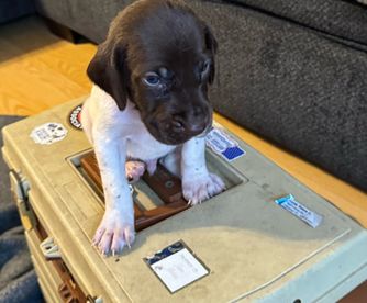 Maggie is a female German Shorthaired Pointer. Carefully selected as a great representative of her breed, Alex decided to make her part of their program. Alex has passed Good Dog’s screening process, which involved a review of their breeding practices, environment, and the mental and physical health of their dogs.