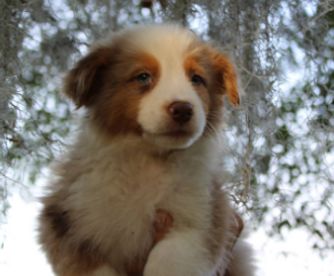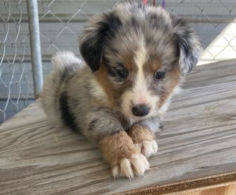 Our Miniature Australian Shepherd puppies include blue merle, black tri, red tri, and red merle. Golden Retriever puppies include dark golden, golden, and light golden. Colors will vary depending on the parent dogs.