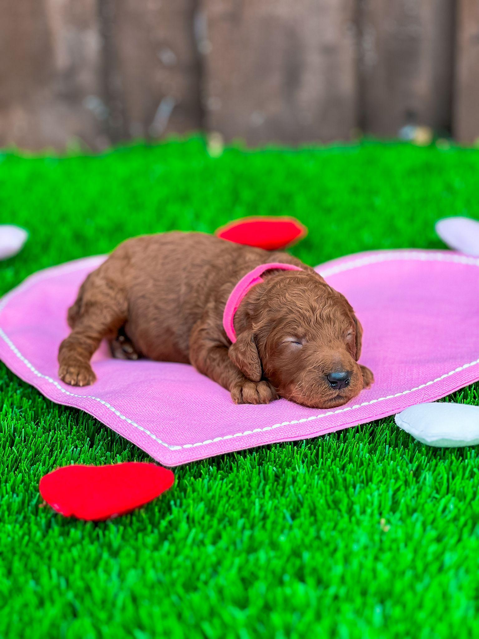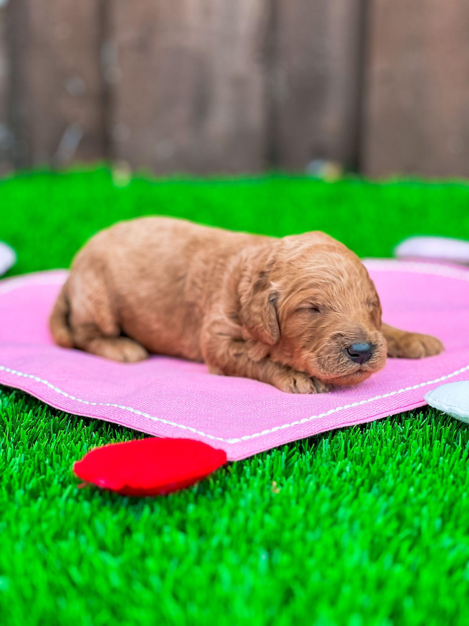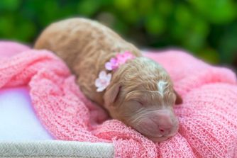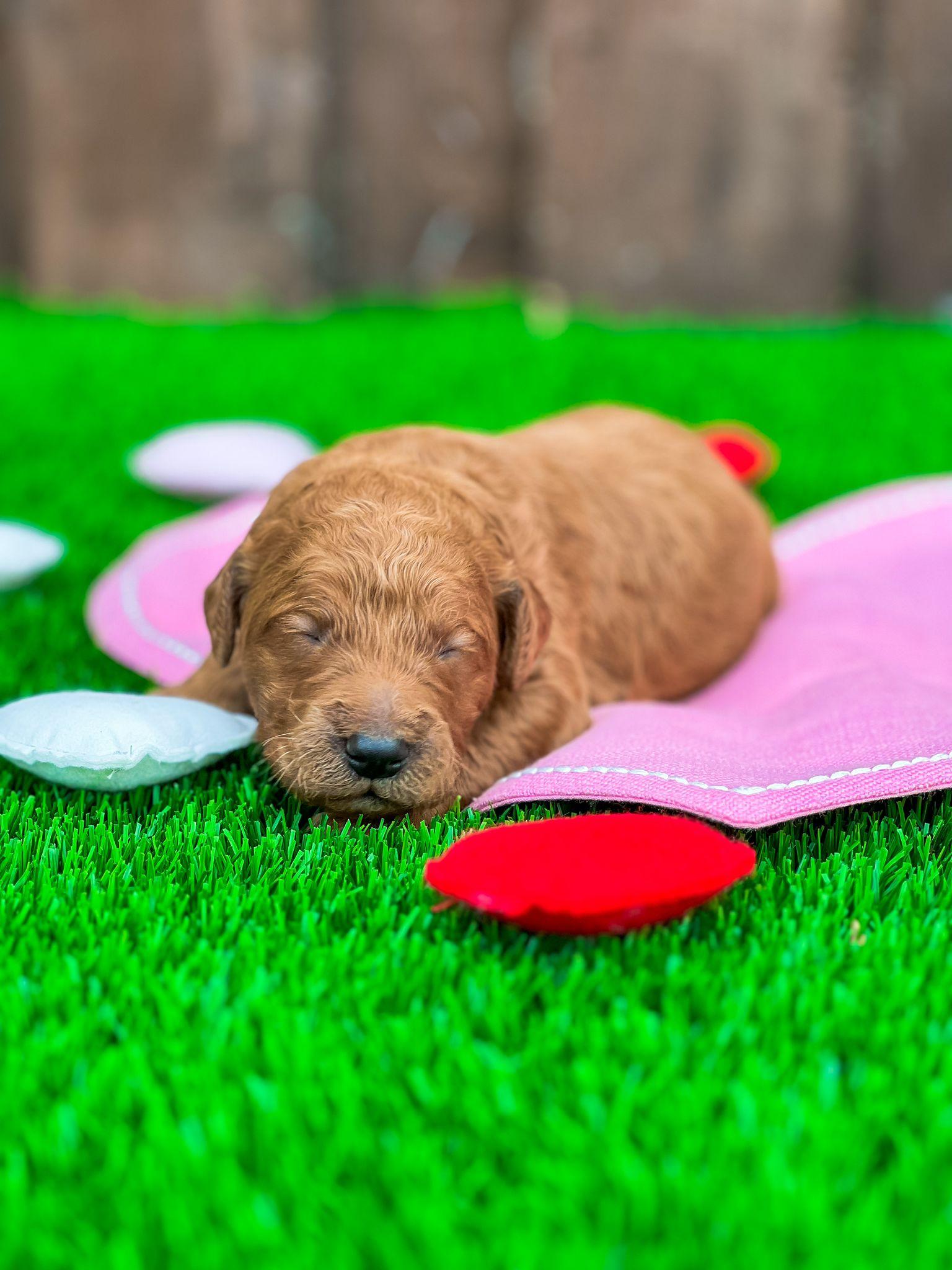 Nini is a female Goldendoodle. Carefully selected as a great representative of her breed, Alexa decided to make her part of their program. Alexa has passed Good Dog’s screening process, which involved a review of their breeding practices, environment, and the mental and physical health of their dogs.