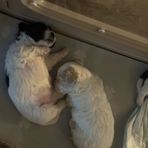 We just got our first haircuts ✂️, we’re used to puppy baths 🛁, and we’ve mastered the art of eating, barking, and playing with our siblings.