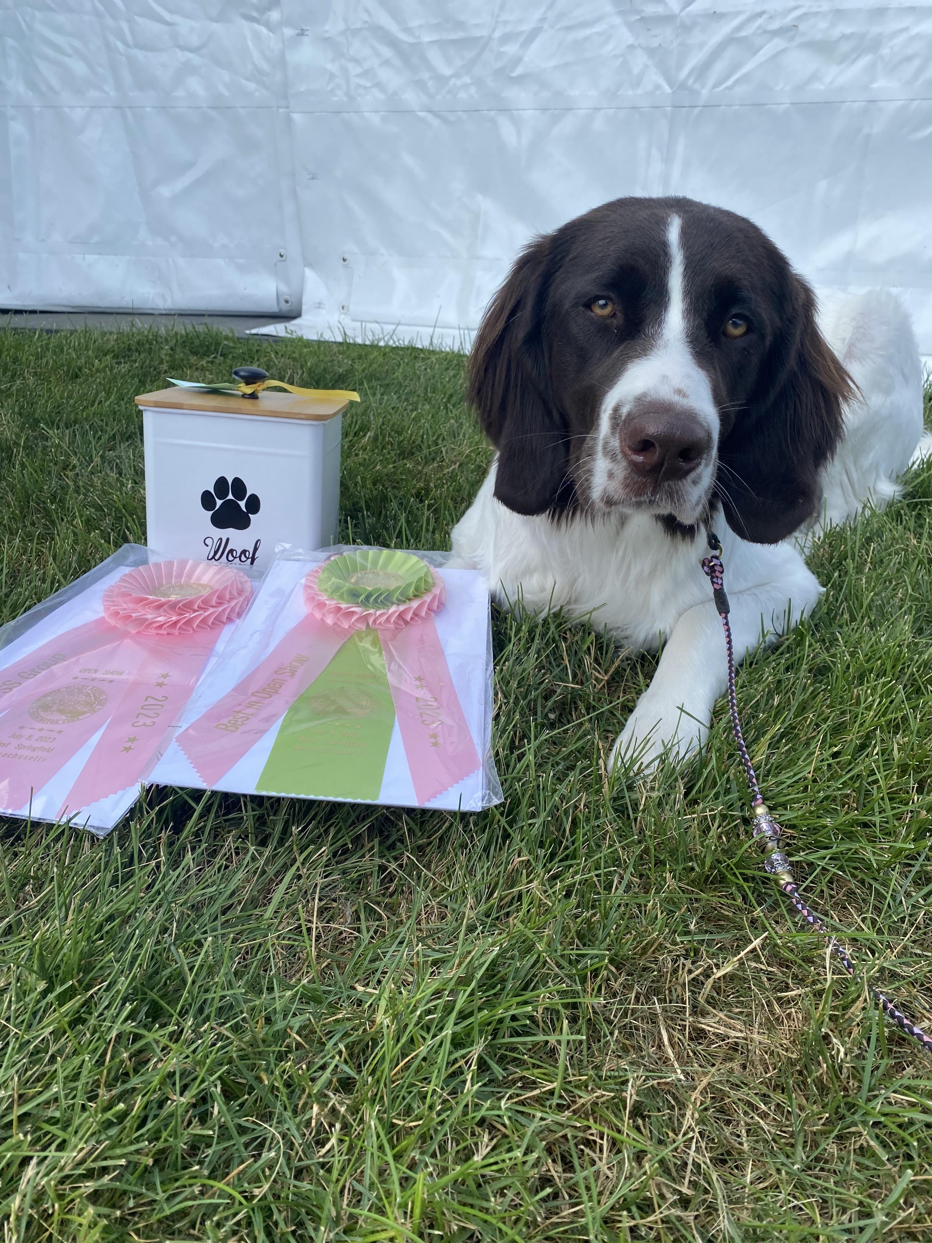 Two Gun's Into The Wind BN RN JH CA BCAT SWN SCE SIA SEA SHDN CGC ATT NW2 L1I, Curiosity/Curie, is an almost three-year-old hunting and sport dog who is also a wonderful family companion. We regularly compete in hunting tests, scentwork trials, and obedience trials, often on the same weekend! She's a quick learner who will do anything for you as long as you make it fun. She also has 11/15 points needed for her Certificate of Merit and has won Best In Open Show through the AKC.
