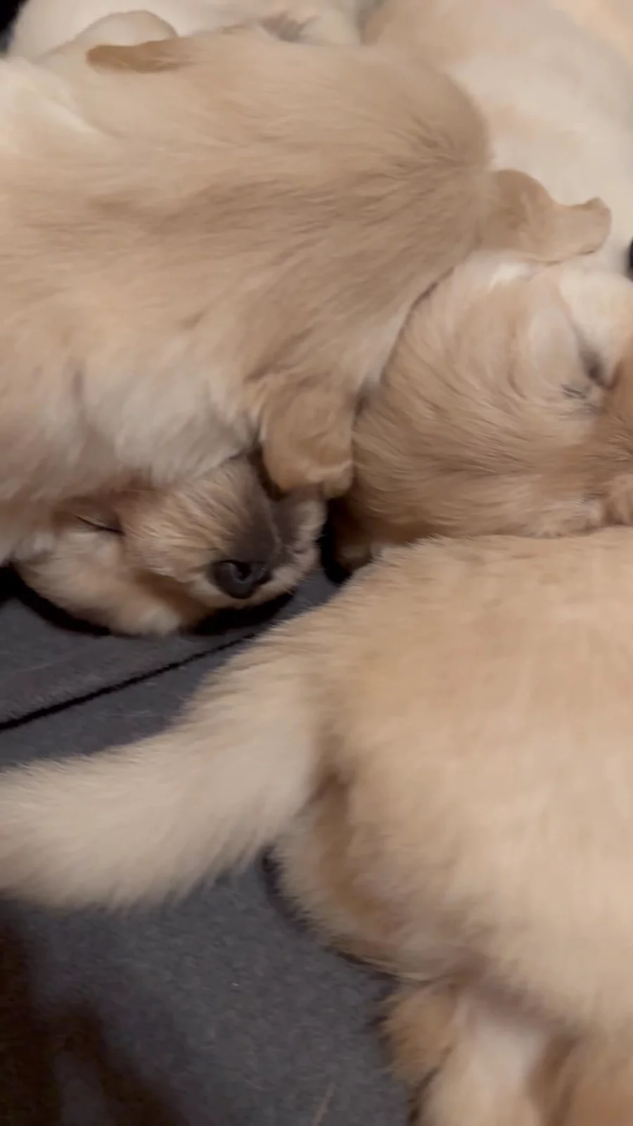 Puppy puddle! They’re all growing and starting to show more personality. Also they are incredibly soft and fuzzy.