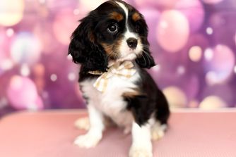 Our puppies include blenheim, ruby, tri-color, and black and tan. Colors will vary depending on the parent dogs.