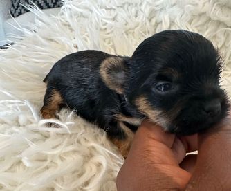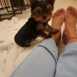 I contacted her through the app and she responded almost immediately. She had quite a bit of experience with raising Yorkies and had one male left. We probably spent at least an hour messaging back and forth and since we live so close to each other, she came to my house that evening after work with him.