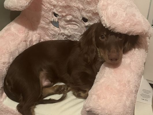 Captain is the most loving, cuddly, protective miniature dachshund! He loves to run and play with toy, he loves to act like he can protect you and then get scared, and he is the BIGGEST cuddler!