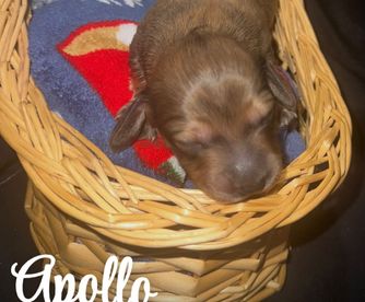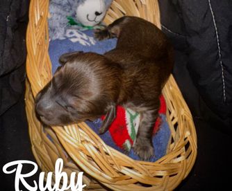 Our puppies include red and chocolate and tan. Colors will vary depending on the parent dogs.