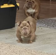 Gunner is calm, quiet and just wants hugs and love. Bear hugs allowed. He is out of our Charlee line and has a spectacular Lilac coat. Dad was Chocolate and Charle is Fawn Lilac.