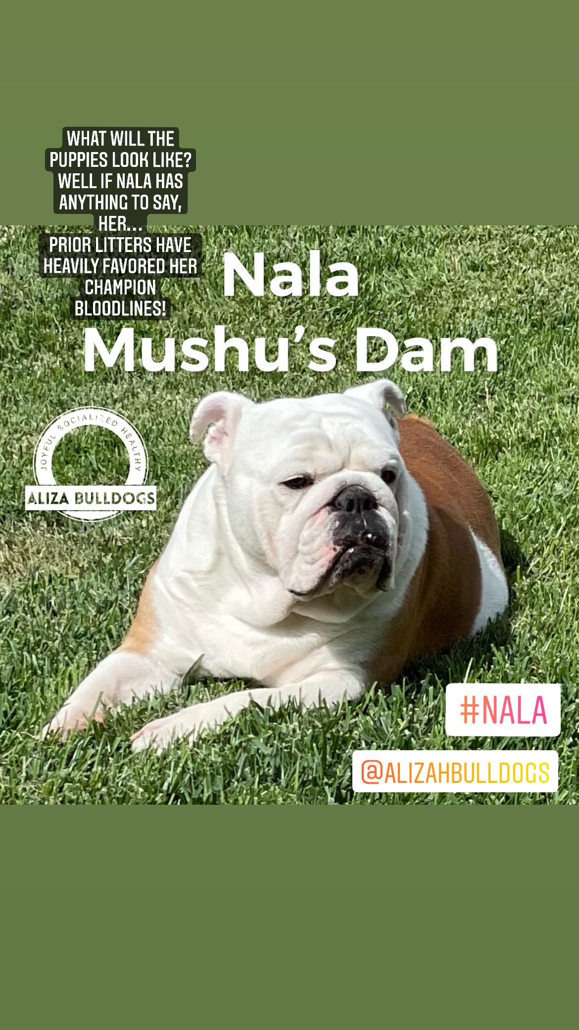 Nala is a female Bulldog. Carefully selected as a great representative of her breed, Alizah decided to make her part of their program. Alizah has passed Good Dog’s screening process, which involved a review of their breeding practices, environment, and the mental and physical health of their dogs.
