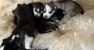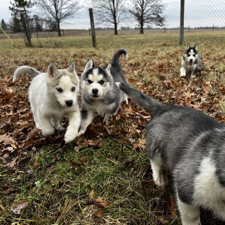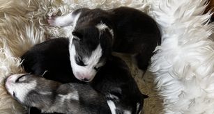 Our puppies include gray and white and black and white. Colors will vary depending on the parent dogs.