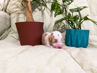 Day Three: Begining this day, we will trim all the puppy's nails. We will continue to do this every three days until they are ready to go home! Week One: At the beginning of this week, we will reach out and interview you. We do this to learn more about you and what you are looking for in a dog. We will also show you a preview of the puppies, but you will not choose a puppy at this point. During this week, we will also begin touch desensitization by touching the puppies all over their bodies. We will do this daily until they go home!
