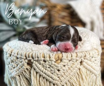 Our puppies are exposed to many socialization opportunities and train them in ENS. We are intentional with training them to be well rounded family dogs. We pride ourselves on the care and love we provide. We are very open with showing families our behind the scenes and inviting them into our homes. Each litter becomes apart of our family and are mourned when they leave.