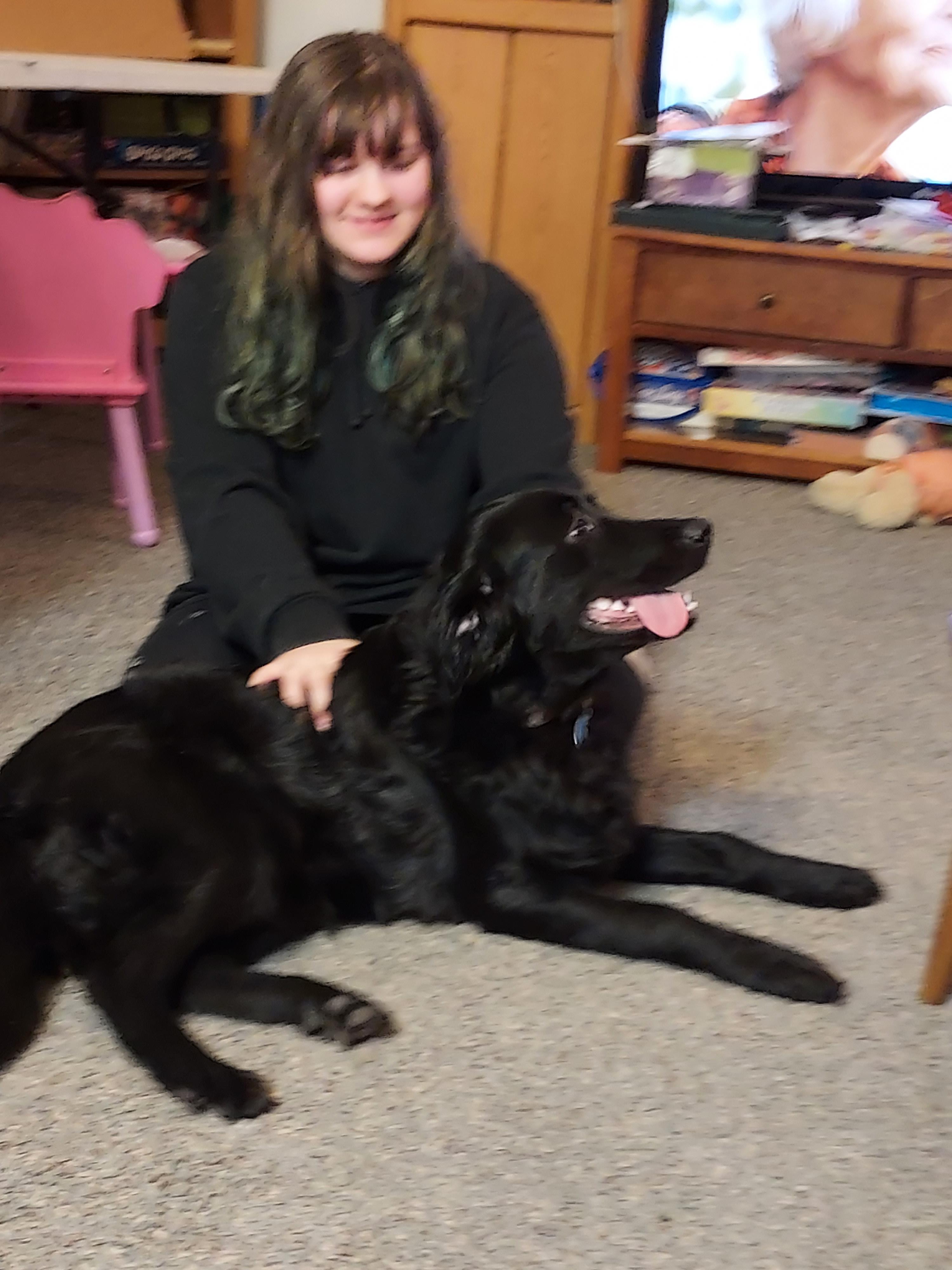 Black and white coltriever. Loves humans and playful with other dogs. Sammie is retires from having puppies now.