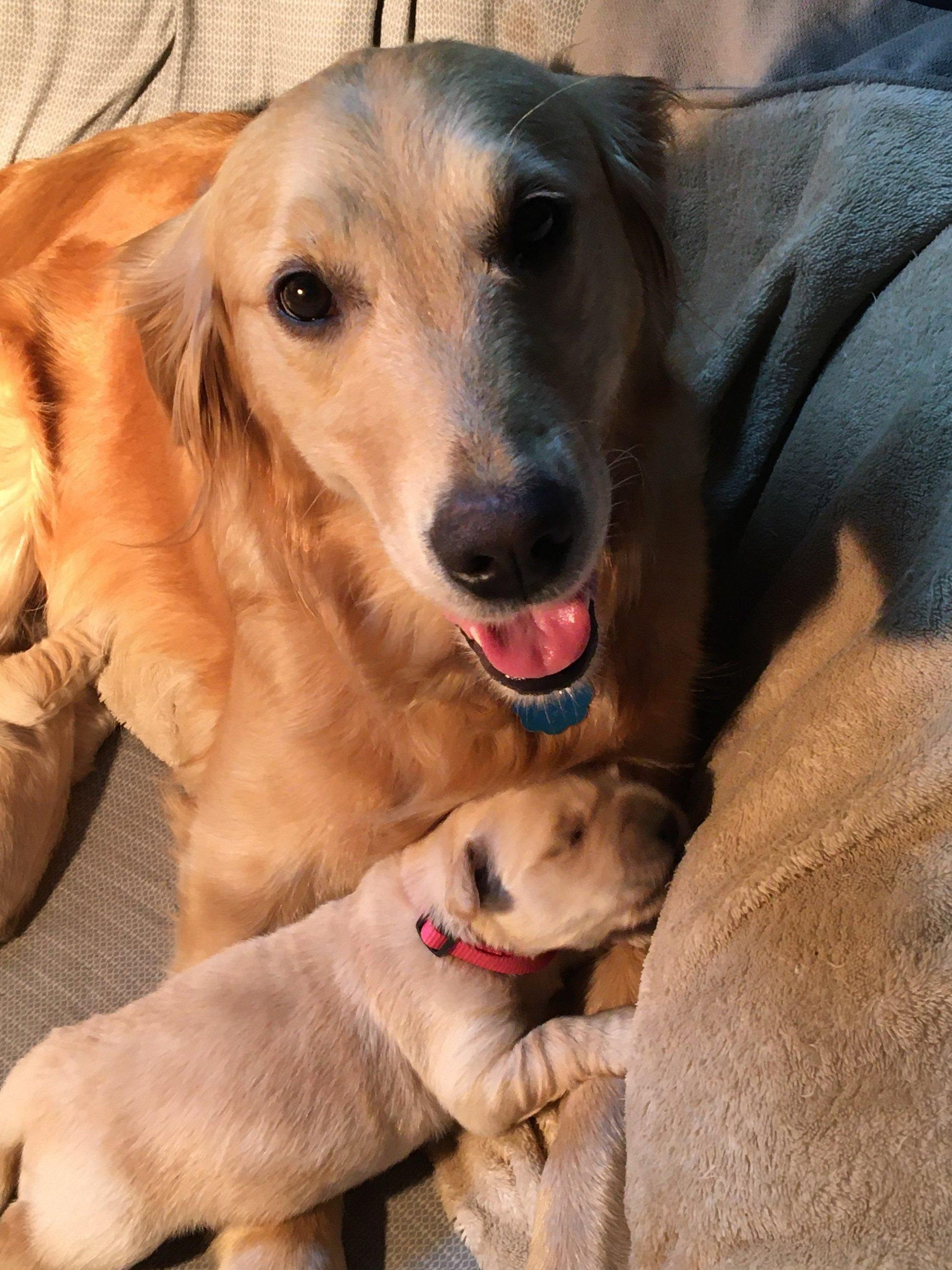Lemon is a female Golden Retriever. Carefully selected as a great representative of her breed, Rachelle decided to make her part of their program. Rachelle has passed Good Dog’s screening process, which involved a review of their breeding practices, environment, and the mental and physical health of their dogs.