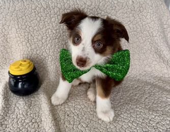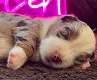 Our objective is to raise healthy, well socialized and family-centered Mini Aussies. Our adults are health tested to ensure we are raising healthy and happy puppies. Our adults are seen regularly by vets and each puppy goes through ENS exercises as a newborn, socialized in a responsible and healthy way, litter box trained, and has a final vet check to ensure they are ready to take on the world!