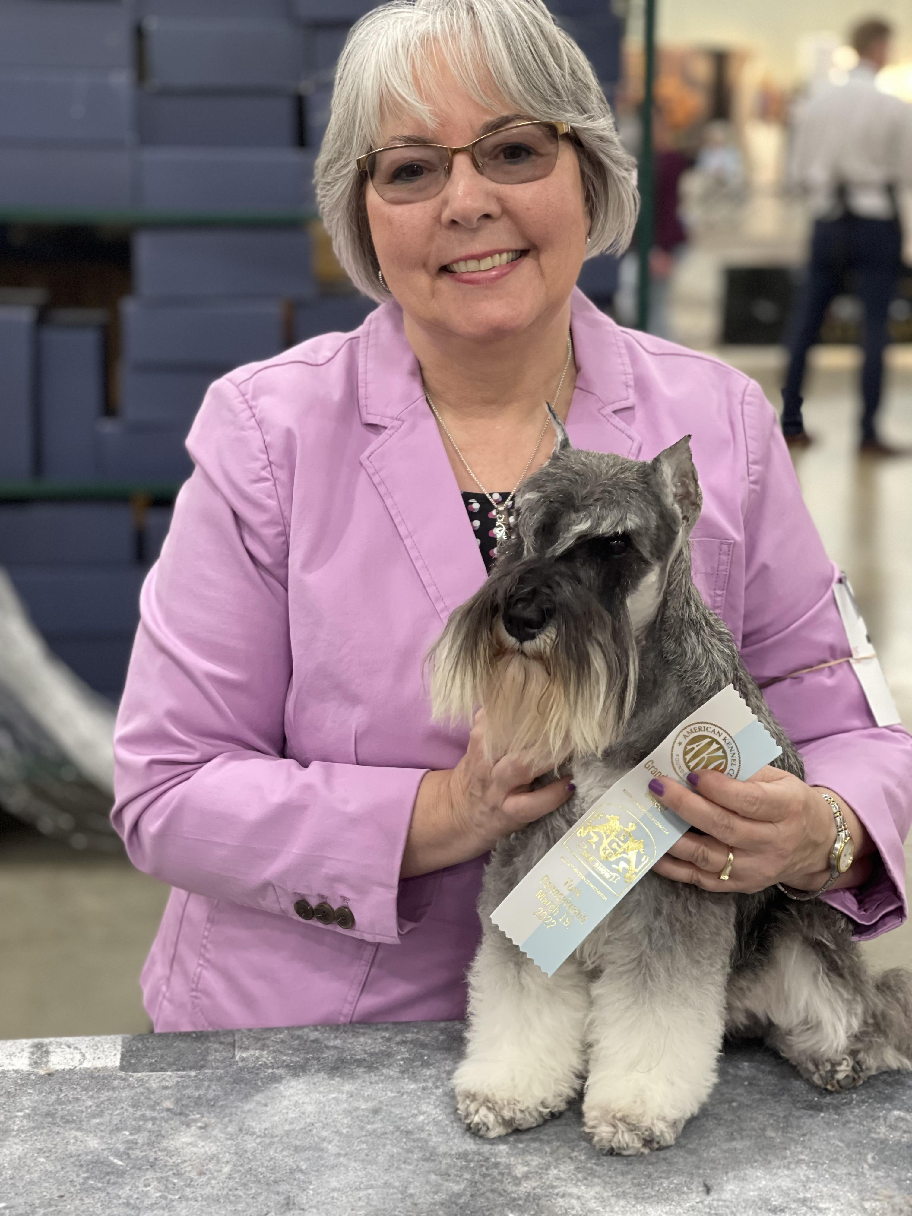 I'm Barbara D., the breeder behind Allegro Miniature Schnauzer’s located in Coatesville, PA. We are passionate about Miniature Schnauzers. Our program is an example of how to responsibly breed and raise quality, purebred and smart Miniature Schnauzer’s that are loving and welcome additions to your family and community. Our dogs are beautiful and active in the show ring and doing dog sports.