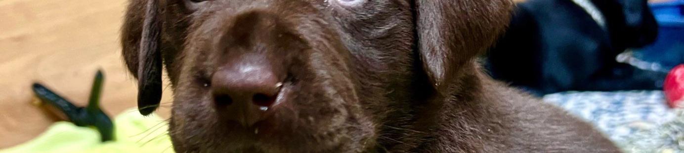 I highly recommend Debbie and Allen Sunnyside AKC Labs if you are looking for an amazing labrador retriever puppy. We brought Walter home a couple weeks ago from Cocoa and Smokey's litter and he is an absolute gem of a dog. I was more than a little nervous about bringing an 8-week-old puppy home when we already have a mini Evil Knievel aka my 4 year old son to chase after, but boy did he put us at ease quickly. I think it only took a day or two for him to catch on to our routine, and he has been so easy to train. In the two weeks since he arrived, he already indicates at the door when he needs to potty, sleeps and naps in his crate without issue, and knows sit, down, stay, break, shake, spin and is excellent at recall and impulse control for a puppy. Honestly, we couldn't have hoped for more and we expected a lot less.