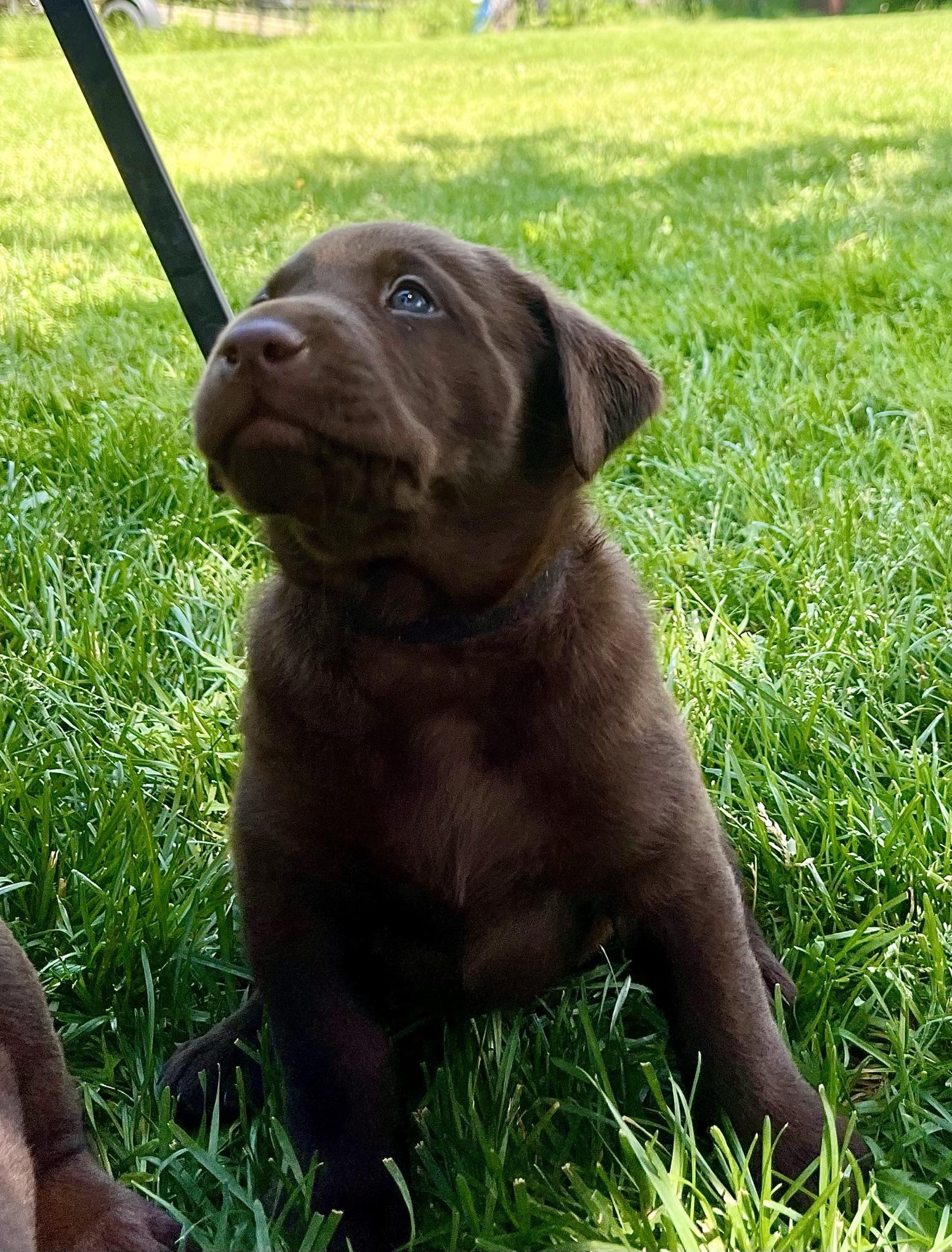 I highly recommend Debbie and Allen Sunnyside AKC Labs if you are looking for an amazing labrador retriever puppy. We brought Walter home a couple weeks ago from Cocoa and Smokey's litter and he is an absolute gem of a dog. I was more than a little nervous about bringing an 8-week-old puppy home when we already have a mini Evil Knievel aka my 4 year old son to chase after, but boy did he put us at ease quickly. I think it only took a day or two for him to catch on to our routine, and he has been so easy to train. In the two weeks since he arrived, he already indicates at the door when he needs to potty, sleeps and naps in his crate without issue, and knows sit, down, stay, break, shake, spin and is excellent at recall and impulse control for a puppy. Honestly, we couldn't have hoped for more and we expected a lot less. Debbie was super sweet and communicative, and it was obvious when she and Walter were saying their goodbyes that she really bonds with each of them. She provided blankets and toys we rubbed on momma for the long care ride home and a thumb drive with a ton of info with regards to pedigree and genetic testing, and best of all baby pictures of Walter and both his parents. If there is ever an issue or question that arises it's reassuring knowing that someone with her experience is available to help problem solve. Ultimately, they are doing things right out there in Sunnyside and the proof is in the puppy. If we're ever ready for a second lab for sure we'll be making the trip back. Thank you Debbie! Aaron + Yesy + Marcelo