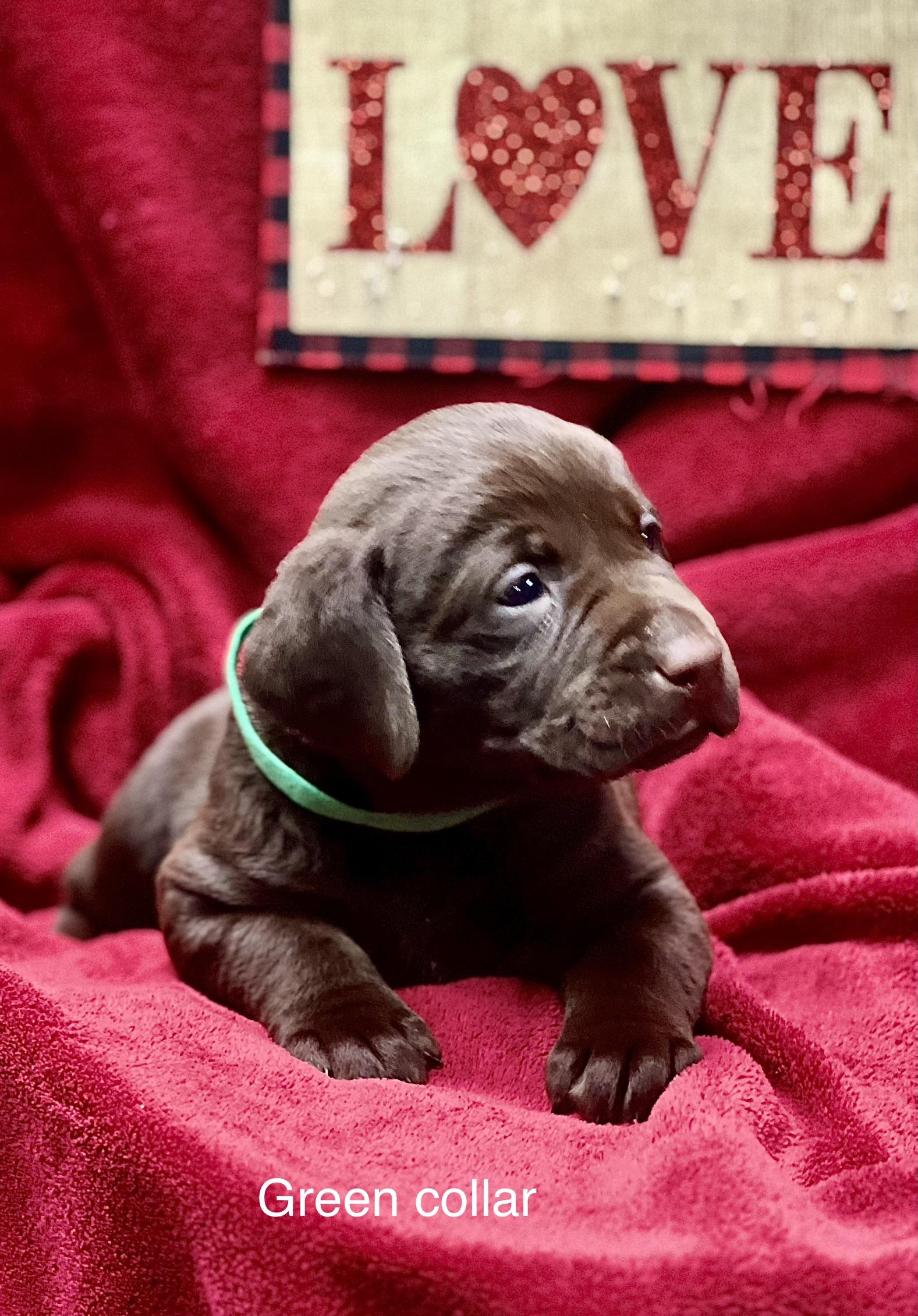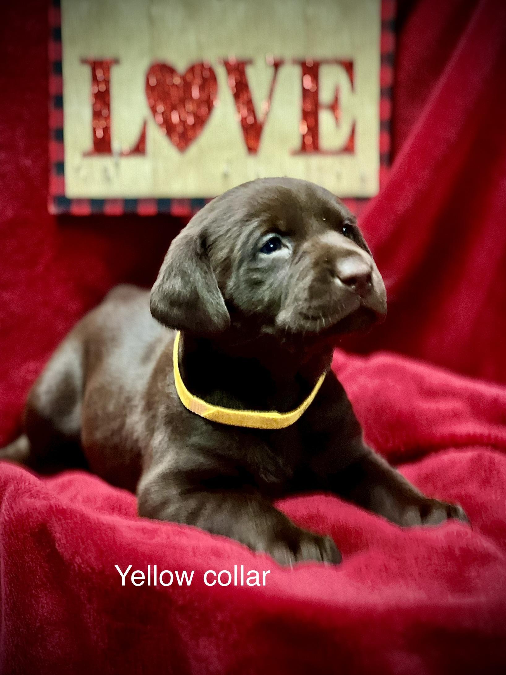 Our puppies include black, chocolate, and yellow. Colors will vary depending on the parent dogs.