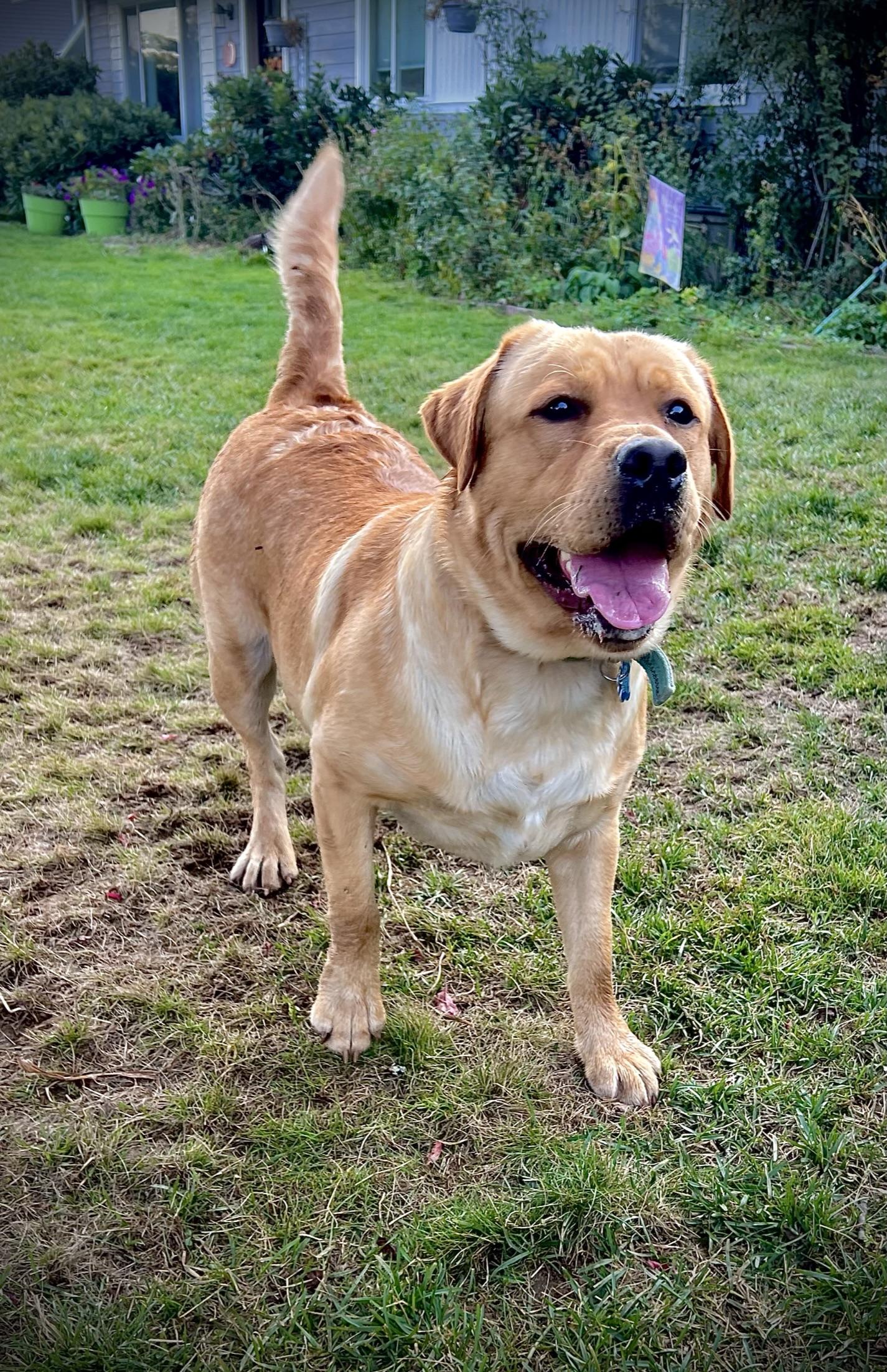 Bailey is our sweetest female lab and her nickname is puppy kisses. She is a dynamo when it comes to fetching and retrieving. She is our only lab who can play catch and dribble a Chuck it ball across the concrete.