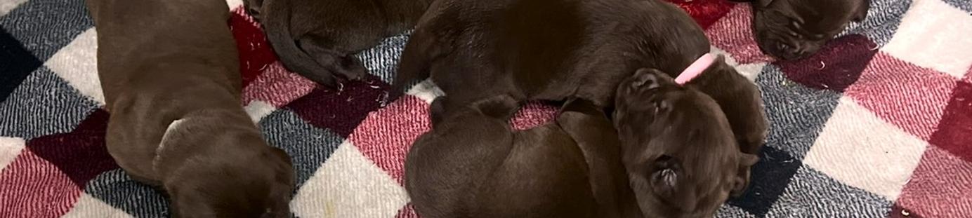 We had our first litter of puppies in 1988. In 2018, we decided to start our breeding operation with our Sadie, Smokey, and Cocoa. I searched for quite a while to find the perfect lines to use. I wanted a mix of hunting pedigrees and family dogs with a calm demeanor. We have had success with our pairings. Our additions in 2020 include Oakley and Bailey. In 2021 we added Ryder Boone, Shiloh Duchess and Buckley Gauge. In 2023 we kept Maizy Copper Sunset from Oakley and Ragnar’s January litter. She is our third generation and a gorgeous fox red. We also kept Shelby Scout Sunshine From our November 2023, Sadie and Ryder Boone litter. She is a spunky Beautiful black female, just like her mama.