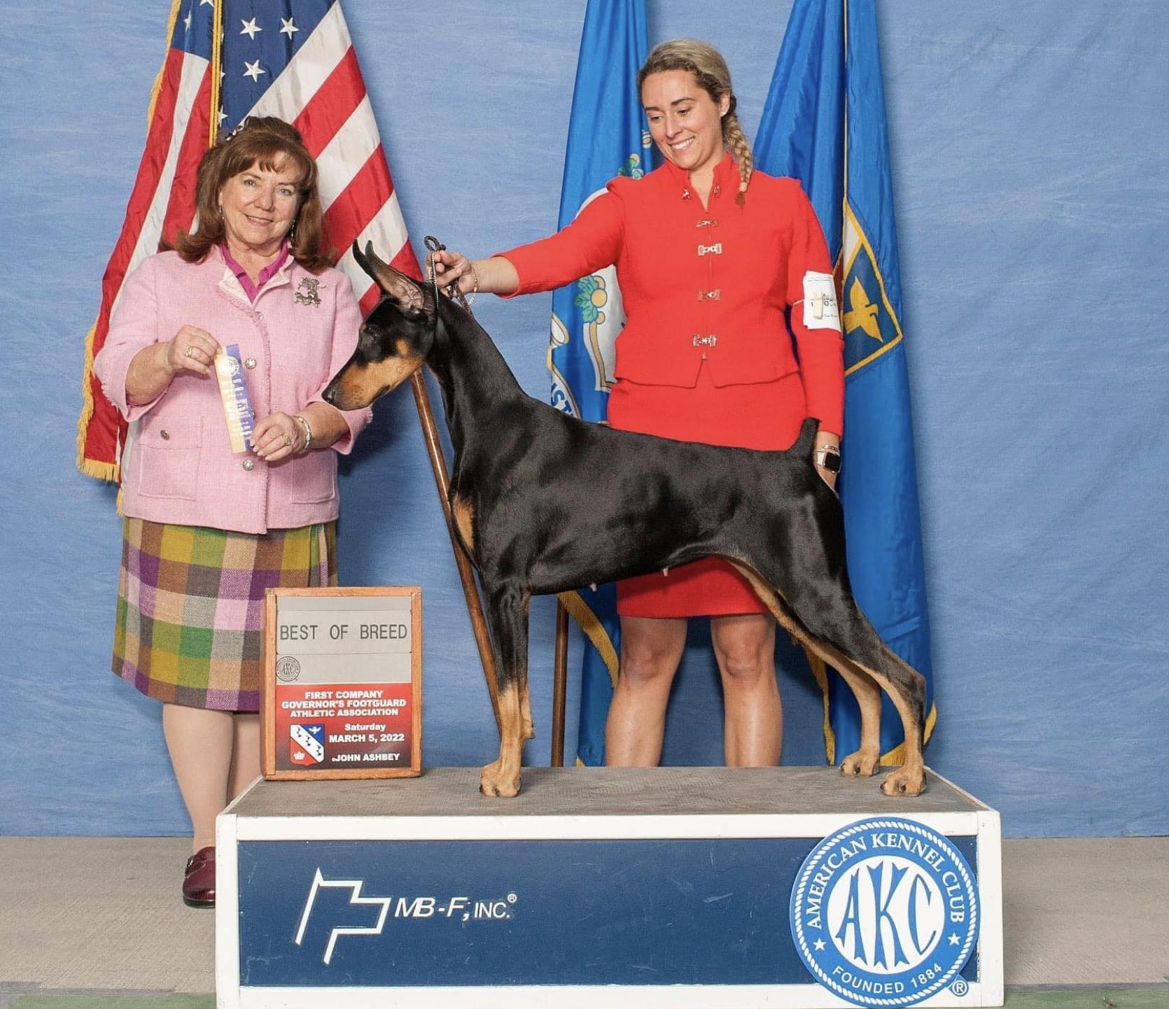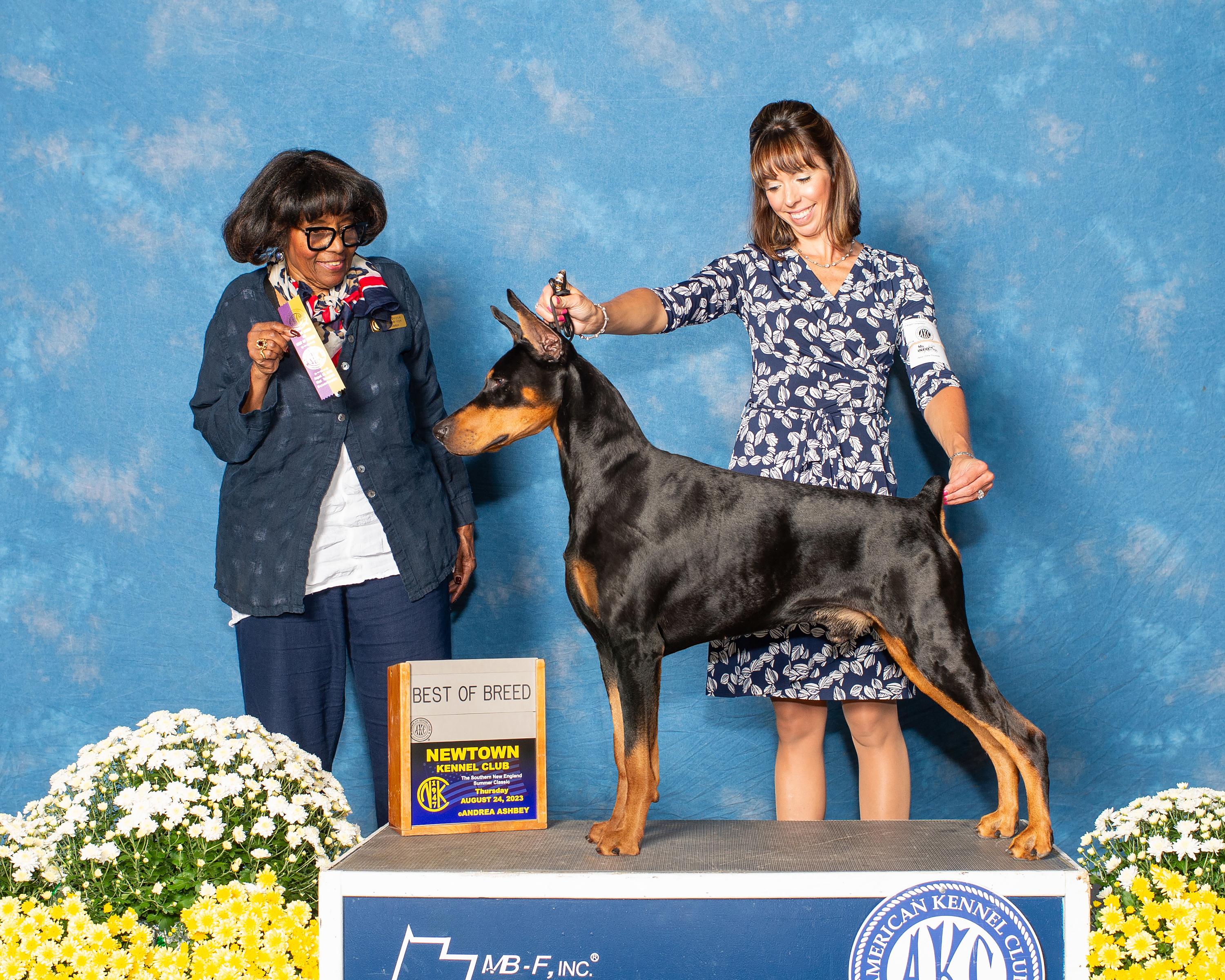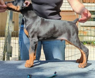 I'm Angela F., the breeder behind Allettare Dobermans located in Mont Vernon, NH. We focus on intentional breeding so that we can produce quality puppies that are excellent representations of the standard. We enjoy showing our dogs, and they are our companions in every adventure. We are invested in Doberman Pinschers and in helping the breed thrive. We do all that we can to give our puppies the best lives, including proper health care, thorough socialization, and finding them each wonderful, loving homes. Visit our page at allettare dot com for more information.