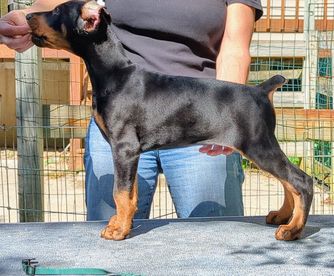 Stella is a female Doberman Pinscher. Carefully selected as a great representative of her breed, Angela decided to make her part of their program. Angela has passed Good Dog’s screening process, which involved a review of their breeding practices, environment, and the mental and physical health of their dogs.
