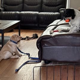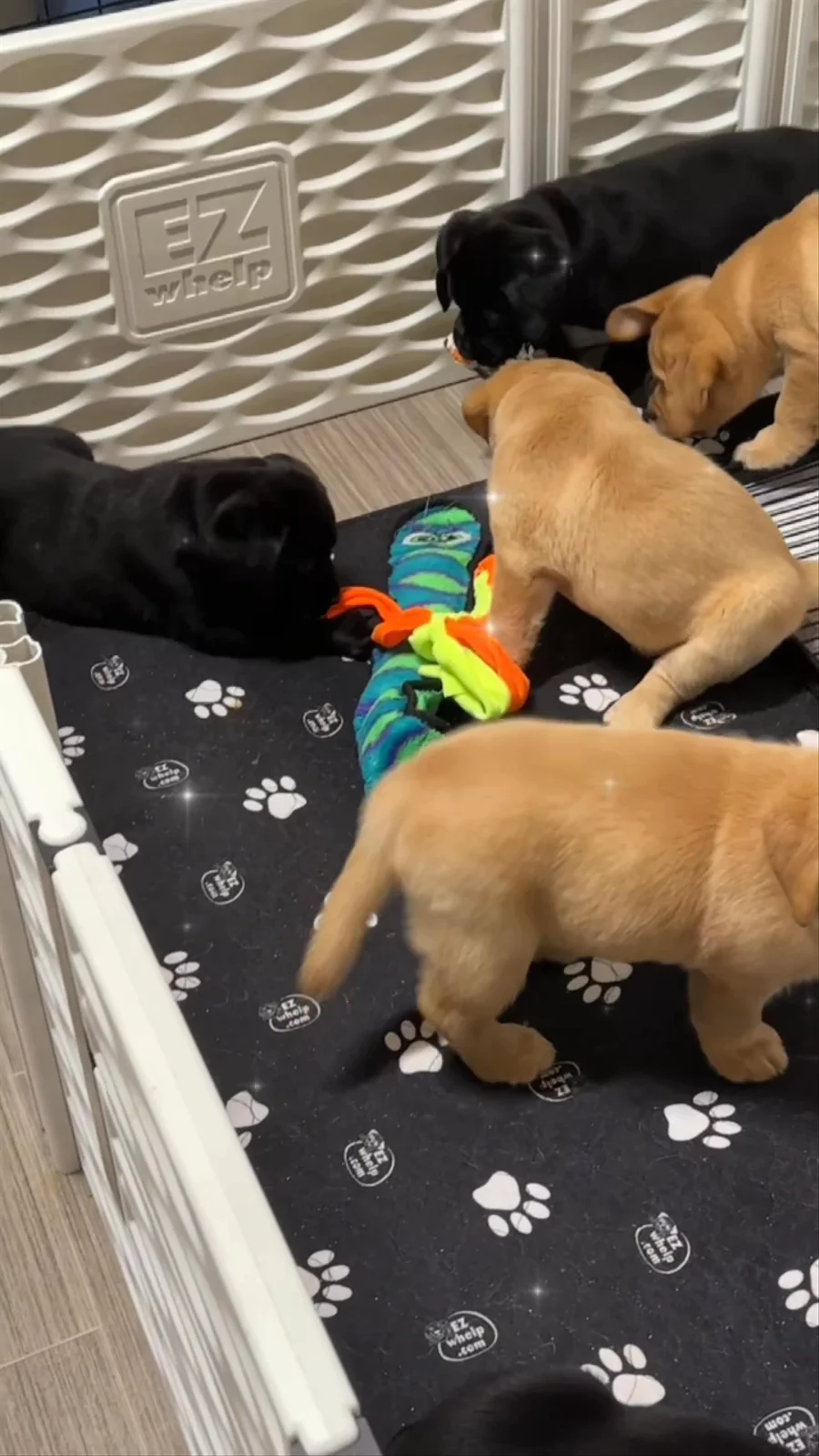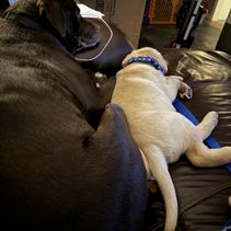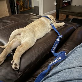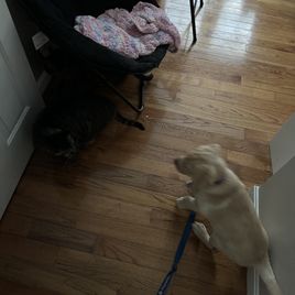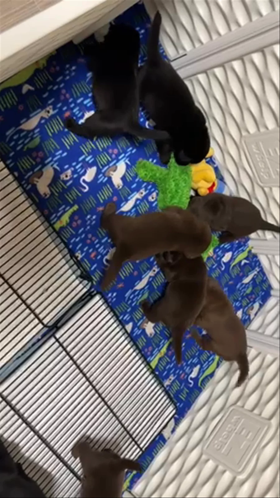 Alley did a great job crate training our new pup Tucker. Two weeks in and Tucker is learning our routine and likes and dislikes of our other dogs. He has quite the personality. We were told he was the lazy one of the litter but no labs are really lazy. He is energetic and fun the see how he handles new experiences. Not much bothers him between noises and our crazy kids. So happy we found Alley and got our new pup Tucker