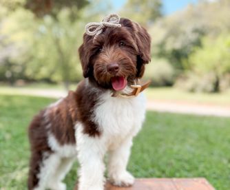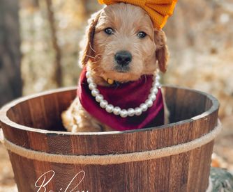 Tilly is a female Goldendoodle. Carefully selected as a great representative of her breed, Catherine decided to make her part of their program. Catherine has passed Good Dog’s screening process, which involved a review of their breeding practices, environment, and the mental and physical health of their dogs.