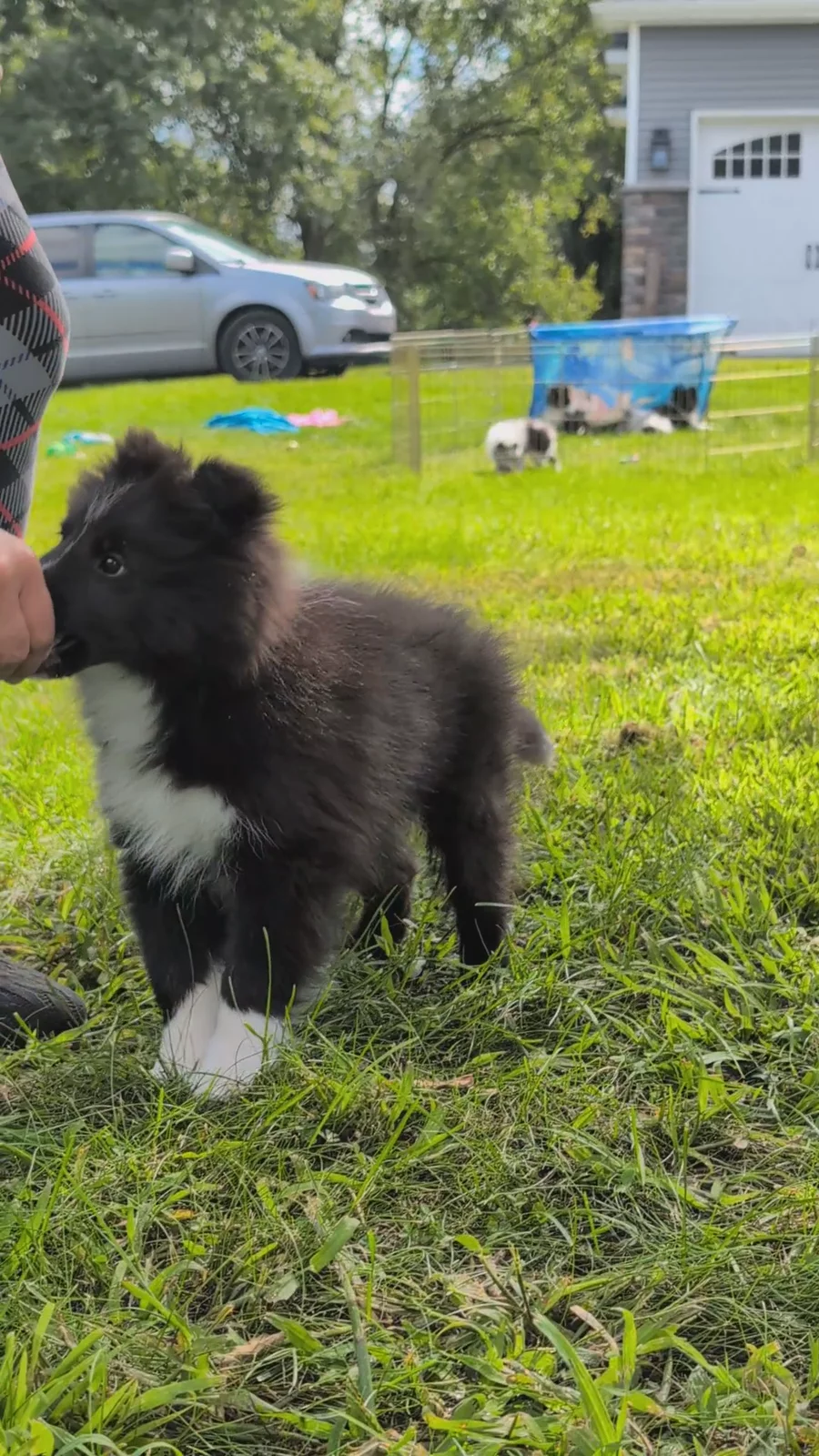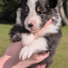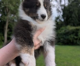 Our puppies include black white and tan, blue merle white and tan, blue merle and white, and black and white. Colors will vary depending on the parent dogs.