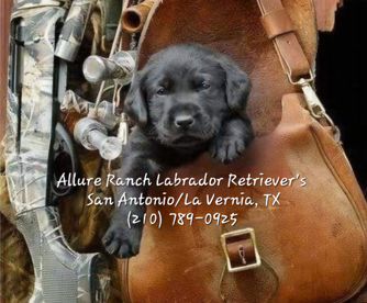 I'm Kimberle Y., the breeder behind Allure Ranch Labrador Retriever's located in La Vernia/San Antonio, TX. We strive to produce AKC English Champion bloodline Labrador puppies with large block heads, beautiful coats, otter tails, big paws, standard black noses. These are intelligent puppies that will be great for hunting, obedience, or a family pet. Genetic Health Tested Multi-Titled Champion Bloodlines.