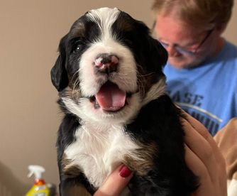 Betty is a female Bernedoodle. Carefully selected as a great representative of her breed, Kristin decided to make her part of their program. Kristin has passed Good Dog’s screening process, which involved a review of their breeding practices, environment, and the mental and physical health of their dogs.