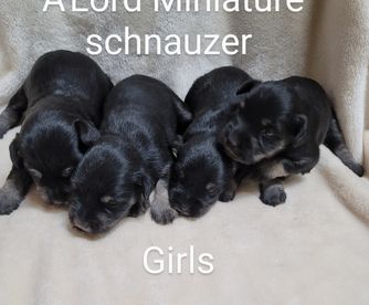I'm Darlene Z., the breeder behind A'Lord Miniature Schnauzer located in Athens, AL. Breeding traditional AKC Miniature Schnauzers since 1986 in black, salt and pepper, and black and silver. Champion lines from the U.S., Ukraine, Russia, and Mexico. Professional groomer, trainer, AKC CGC Evaluator, and former vet tech with 15 years of hands-on experience.