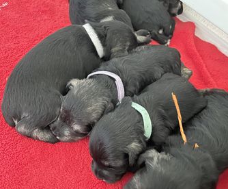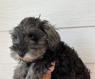Our puppies are salt and pepper. Colors will vary depending on the parent dogs.
