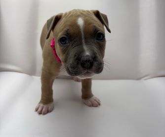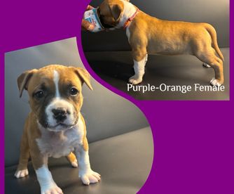 Our puppies include blue brindle, red, blue fawn, blue, and black. Colors will vary depending on the parent dogs.