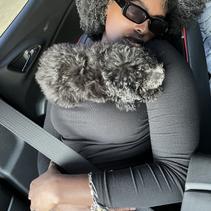 Sabrina kept in touch with us through text message on our trip up there, she had Kaya all set to go. She gave us a little tote bag with some essentials in it... some of the kibble she'd been eating, a pee pad, a wad of paper towels (which I was very grateful for since Kaya got carsick!) and she also had papers for her including her immunization records. Sabrina was so nice! I also got to meet Kaya's dad, he was a lovely standard poodle. She is happy to keep in touch with us, which to me is the mark of a good breeder!!