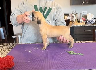 Our puppies include brindle and fawn. Colors will vary depending on the parent dogs.