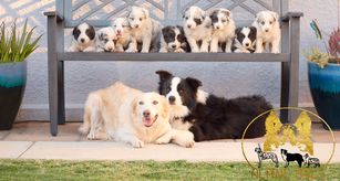 Our Border Collie puppies include slate merle, blue merle, black, blue, gold, and slate. Siberian Husky puppies include sable and white, red and white, black and white, gray and white, brown and white, black tan and white, agouti and white, white, and black. Toy Australian Shepherd puppies include black & white, red, black tri, blue merle, red merle, red tri, and blue tri. Colors will vary depending on the parent dogs.