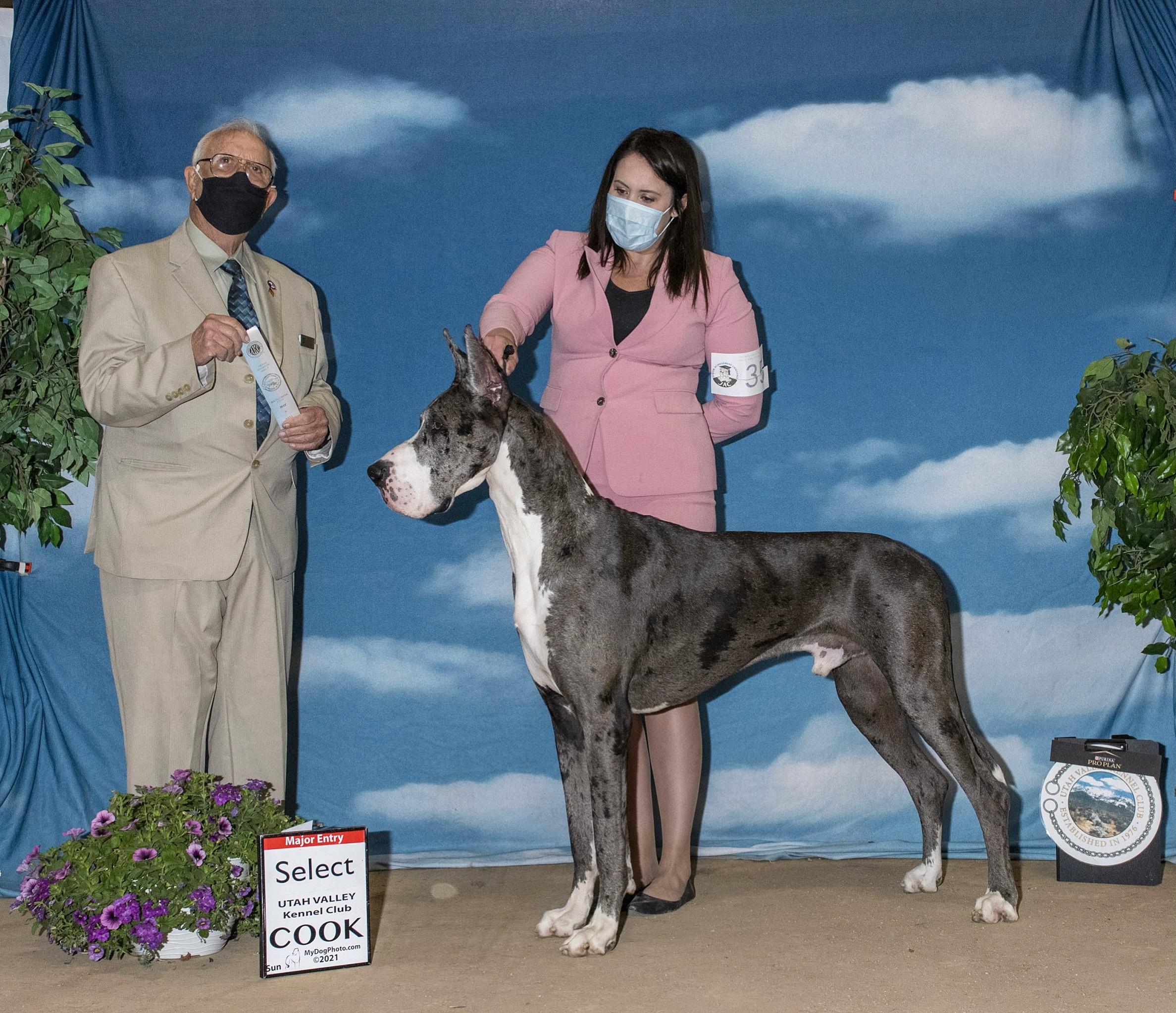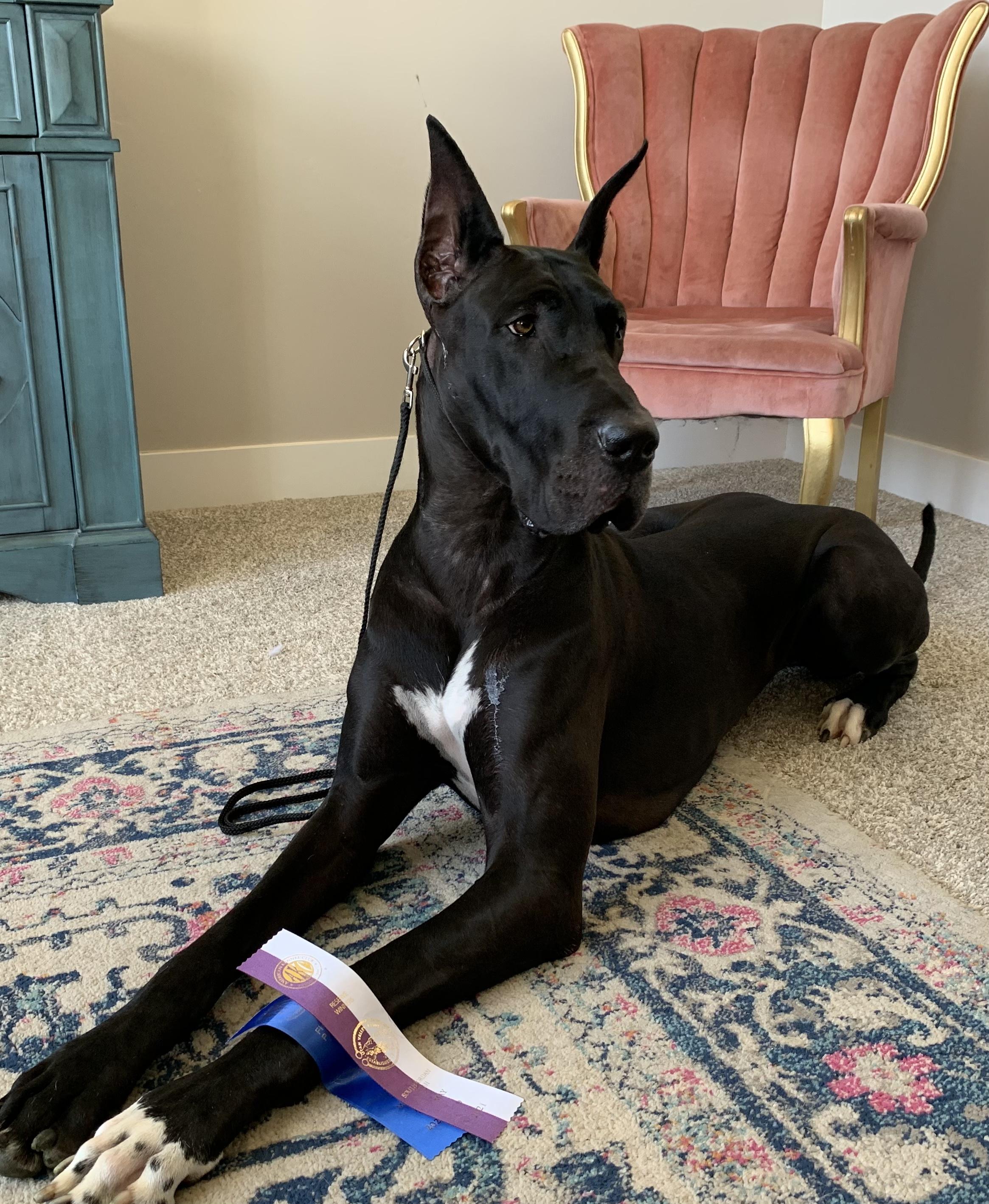 I had no intentions of breeding at first. I wanted a harlequin Great Dane and the only way I was able to acquire one was by agreeing to show in AKC conformation. Needless to say, I caught the dog show bug and that passion led to producing my own Great Danes!