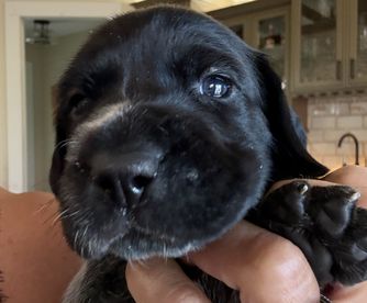 Our puppies include white and liver, liver roan, liver and white, liver, black roan, black and white, and black. Colors will vary depending on the parent dogs.