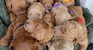 Our puppies include cream, apricot, red, chocolate, black, and parti. Colors will vary depending on the parent dogs.