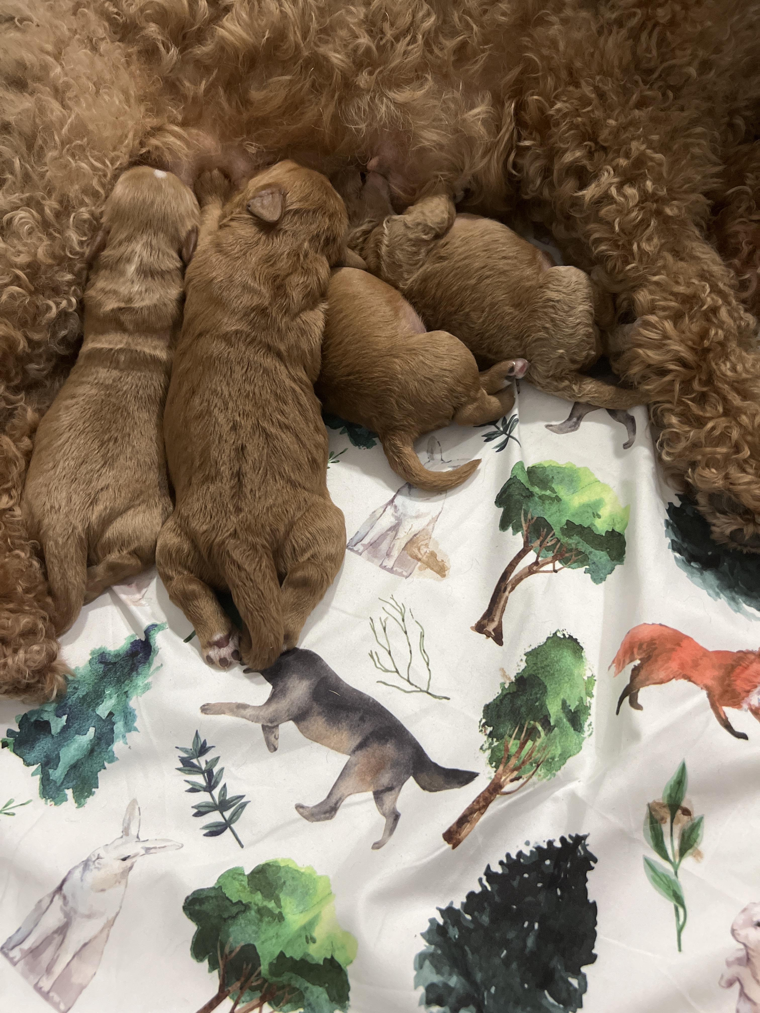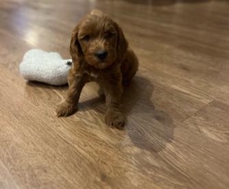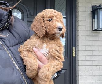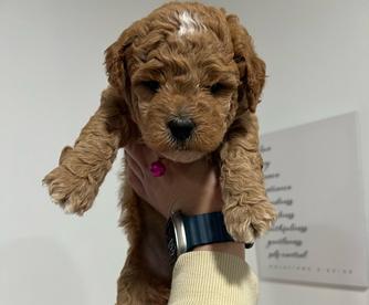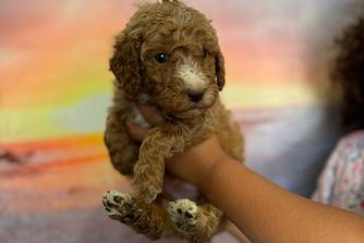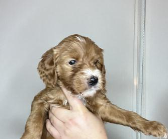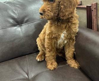 Cavapoo puppies include red, cream, and apricot. Goldendoodle puppies include cream, apricot, and red. Colors will vary depending on the parent dogs.