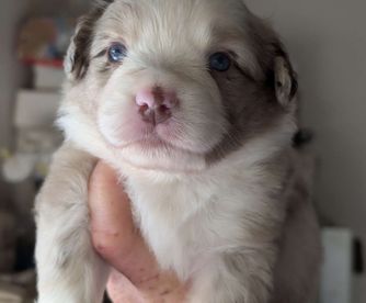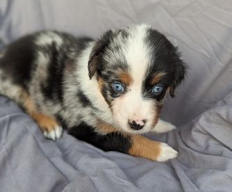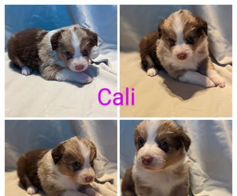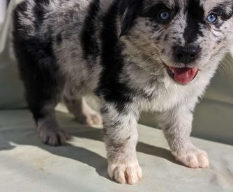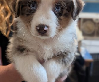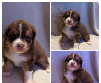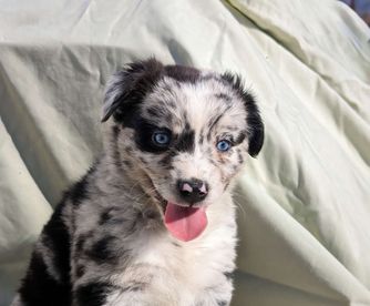 Our Australian Shepherd puppies include red & white, black & white, red merle, blue merle, black tri-color, and red tri-color. Miniature Australian Shepherd puppies include red & white, black & white, blue merle, black tri, red tri, and red merle. Toy Australian Shepherd puppies include red merle and red tri. Colors will vary depending on the parent dogs.