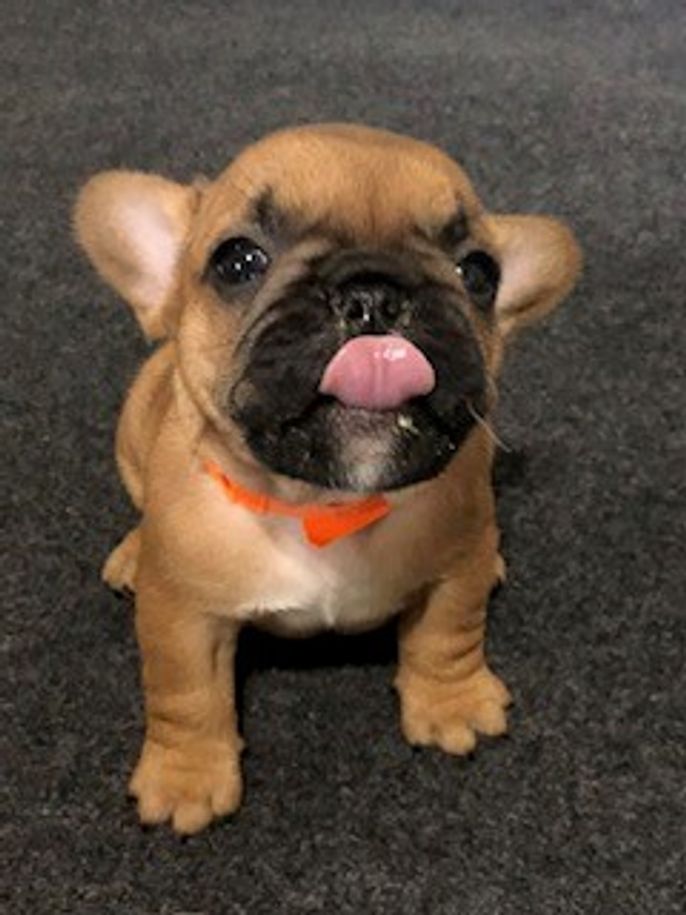 Cheddar is a female French Bulldog. Carefully selected as a great representative of her breed, Tin decided to make her part of their program. Tin has passed Good Dog’s screening process, which involved a review of their breeding practices, environment, and the mental and physical health of their dogs.